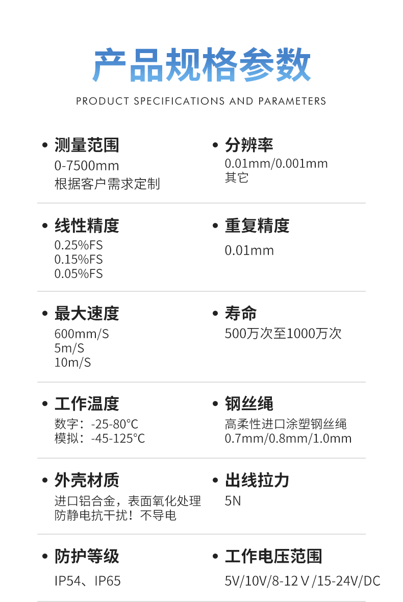 拉繩位移傳感器閘門開度儀高精度拉繩編碼器模擬量數字量信號輸出電子尺